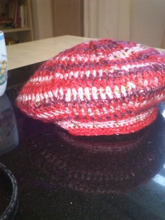 I made this beret a year ago to match the most amazing scarf, I was given as a gift. It is made with King Cole Splash DK yarn.